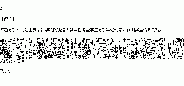 对下表探究动物的绕道取食实验结果分析不正确的是( )