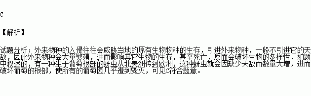 有一种寄生于葡萄根部的蚜虫从北美传到了欧洲,使所有的葡萄园几乎遭到毁灭,其原因是( )