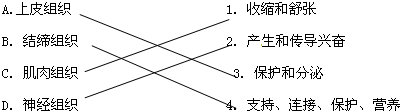解答:解:人体或动物体的主要组织有上皮组织、肌肉组织、神经组织、结缔组织等,各具有不同的功能,上皮组织具有保护、分泌功能,肌肉组织具有收缩和舒张的功能,神经组织能够产生和传导兴奋,结缔组织具有连接、支持、保护、营养等功能.