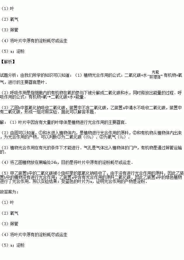 (4)将乙图植物放在黑暗处24h的目的是 .