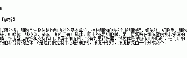 A.A是一层紧贴在细胞壁内侧非常薄的膜