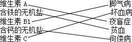 人类所患的某些疾病与缺乏某些必需的维生素或无机盐有关,请将维生素或无机盐的种类和相应的缺乏症连接起来.
