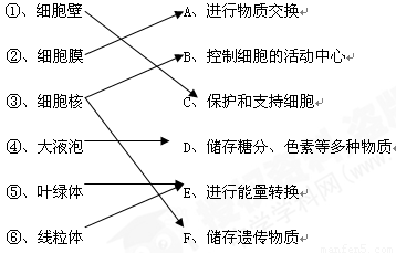 | A.进行物质交换 ②、细胞膜 | B.控制细胞的活动中心 ③、细胞核 | C.保护和支持细胞 ④、大液泡 | D.储存糖分、色素等多种物质 |