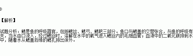 D.水中氧渗入鳃丝中的毛细血管内,血液中二氧化碳渗出毛细血管排入水中,从而完成呼吸作用