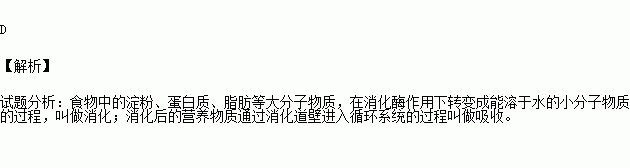 C.营养物质进入小肠的过程 D.食物中的营养成分通过消化道壁进入循环系统的过程