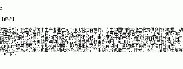 C.食物链和食物网一般都由生产者、消费者和分解者共同组成