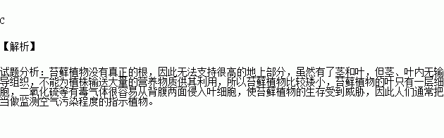 下列植物中只有茎、叶的分化,对二氧化硫等有毒气体特别敏感,可以作为检测空气污染程度的指示植物,这类植物是( )