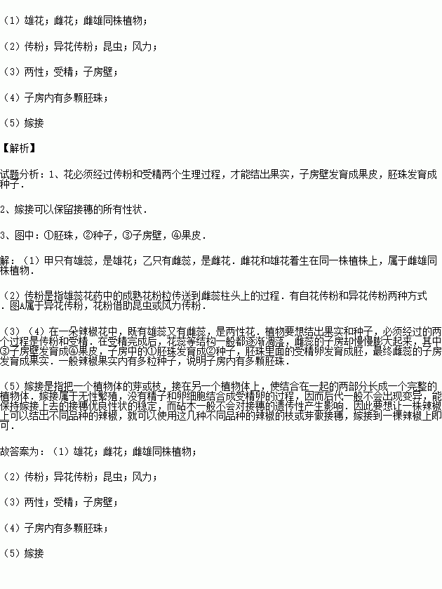 (3)图B中,辣椒花属于 花,要结出辣椒,除完成图A过程外,还要经历的另一个重要生理过程是 .②和④组成了辣椒果实.可食部分④是由[③] 发育来的.