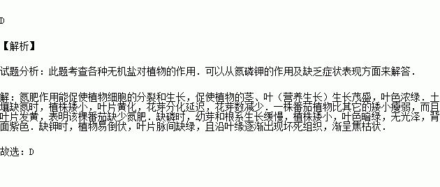 张大爷是一位经验丰富的菜农.一天,他发现自己种的白菜长得很差,叶小发黄,便施以氮肥.几天后,他发现白菜长势好转,叶色变绿.这说明含氮无机盐能促进植物体的( )