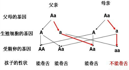 请根据表中提供的信息分析回答: 1)所调查的眼皮的单双、耳垂的有无、卷舌的能与不能在遗传学上称为 。 2)父母是单眼皮,小青也是单眼皮,这在生物学上称为 ;父母有耳垂,而小青无耳垂,这在生物学上称为 。 3)如果耳垂的有无是由一对基因(B/b)所控制的,那么父亲和小青的基因组成分别为 、 。若小青的父母再生育一胎,是无耳垂的可能性为 。 4)如果能卷舌的控制基因为D,不能卷舌的控制基因为d,那么母亲和小青的基因组成分别为 、 。 5)如果双眼皮(A)对单眼皮(a)为显性。小青母亲通过整形手术,变成双眼皮后,能否生一个双眼皮的孩子? 。 6)已知小青是一个女孩,若小青的父母再生育一胎,是生出男孩的可能性为 。