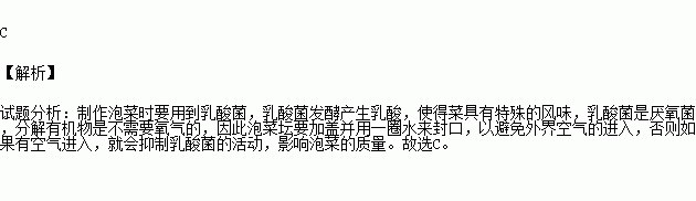 制作泡菜时要用特殊的坛子,坛口必须加水密封,密封坛口的目的是( )