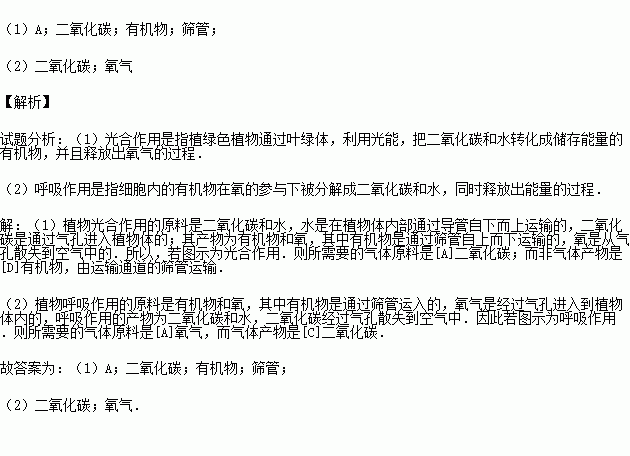 (2)若图示为呼吸作用.则所需要的气体原料是[A] ,而气体产物是[C] .