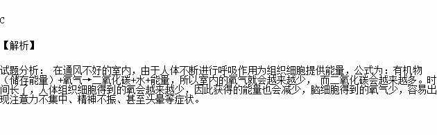 广东省教育厅提倡每节课的课间10分钟,让同学们去室外活动,在没有特殊天气的情况下,教室尽量开窗通风。人在通风不良的室内时间久了,就会有头晕疲劳的感觉,这是由于( )