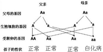 解:遗传是指亲子间的相似性,变异是指子代与亲代之间的差异,子代个体之间的差异的现象.按照变异对生物是否有利分为有利变异和不利变异.有利变异对生物生存是有利的,不利变异对生物生存是不利的.按照变异的原因可以分为可遗传的变异和不遗传的变异.可遗传的变异是由遗传物质改变引起的,可以遗传给后代;由环境改变引起的变异,是不遗传的变异,不能遗传给后代.因此遗传物质发生改变引起的变异都能够遗传给后代,不一定有利,如白化病;父母正常子女患白化病属于可遗传的不利变异,子女的白化病基因来自父母,如图:因此没有产生新基因.可见C符合题意.