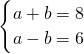 把a+b=8代入得a-b=6,