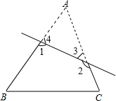 点评:考查了三角形外角的性质和三角形内角和定理,解题的关键是得到∠1+∠2=(∠A+∠3+∠4)+∠A.
