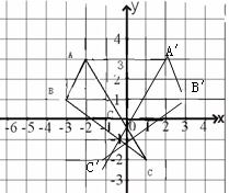 如图,请作出△ABC关于y轴对称的△A´B´C´(其中A´、B´、C´分别是A、B、C的对应点,不写画法),并直接写出A´、B´、C´的坐标.