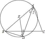 分析:要求证:点E是过A,B,D三点的圆的圆心,只要证明AE=BE=DE即可,可以根据等角对等边可以证得.