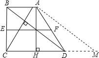 分析:过A作AM∥BD,交CD的延长线于M,先根据中位线定理和平行的性质求得CM的长度,再根据对角线垂直的条件求得AC的长度,利用直角三角形ACH中的三角函数即可求解.