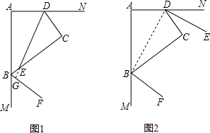 (3)如图2,若BF、DE分别平分∠ABC、∠ADC的外角,写出BF与DE的位置关系,并证明.