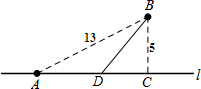 BD=$\sqrt{C{D}^{2}+B{C}^{2}}$=$\sqrt{(12-x)^{2}+{5}^{2}}$km,
