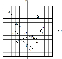 分析 (1)根据点的坐标的表示方法写出A点和B点坐标;(2)根据点的坐标的表示方法描出点M和N;(3)根据三角形的面积公式求解.