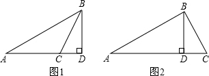 分析:分两种情况讨论:①BD在△ABC外时,根据三角形内角和定理求出∠ABD的度数,然后求出∠ABC的度数,再利用三角形内角和定理求出∠ACB的度数,从而判定出△ABC的形状;②BD在△ABC内部时,利用三角形内角和定理求出∠ABD的度数,然后求出∠ABC=90°,从而判定出△ABC的形状.