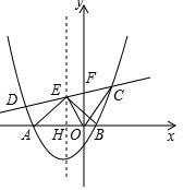 (3)设CD的解析式为y=kx+$\frac{5}{2}$-2k,当y=0和x=-1时,求出FH、EH、AH,根据tanα>tanβ列不等式可求出k的取值范围.