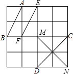 分析:根据网格结构,一个格点向右一个单位,再向上两个单位,然后连接这两个格点的线段即为与AB平行的线段;