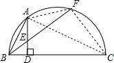 (3)由A,F把半圆三等分,得到∠ACB=∠CBF=30°,而BC=12,得到AB=6,再根据∠BAD=∠ACB,得到∠BAD=30°,所以BD=3,最后在Rt△BDE中,∠CBF=30°,BD=3,即可求出BE.