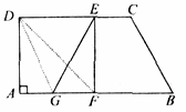 | 证明:(1)∵∠A=90°,AB∥DC, ∴∠ADE=90°, 由沿DF折叠后△DAF与△DEF重合, 知AD=DE,∠ADF=∠EDF=45°, ∴AD=AF=ED=EF, ∴四边形ADEF是菱形,且∠A=90°, ∴四边形ADEF是正方形。 (2)∵CE∥BG,且CE≠BG, ∴四边形GBCE是梯形, ∵四边形ADEF是正方形, ∴AD=FE,∠A=∠GFE=90°, 又∵点G为AF的中点, ∴AG=FG,连接DG, 在△AGD与△FGE中,∵AD=FE,∠A=∠GFE,AG=FG, ∴△AGD≌△FGE, ∴∠DGA=∠EGB, ∵BG=CD,BG∥CD, ∴四边形BCDG是平行四边形, ∴DG∥CB, ∴∠DGA=∠B, ∴∠EGB=∠B, ∴四边形GBCE是等腰梯形。 |