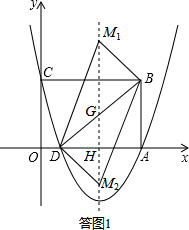 如答图1所示,设对称轴与BD交于点G,与x轴交于点H,则H($\frac{5}{2}$,0).![]()