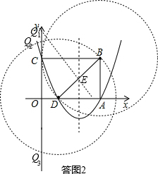 ∴存在Q1(0,$\frac{19}{4}$)、Q2(0,2$\sqrt{3}$),Q3(0,-2$\sqrt{3}$)使得△DBQ为等腰三角形.