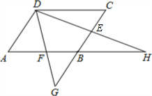 已知:平行四边形ABCD中,E、F是BC、AB的中点,DE、DF分别交AB、CB的延长线于H、G;