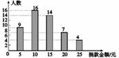 解析试题分析:(1)用捐款15元的人数14除以所占的百分比28%,计算即可得解;