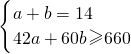 (2)若红旗中学要租用甲、乙两种型号的客车共14辆,请你通过计算,设计出红旗学校的租车方案,并求出租车最低费用。