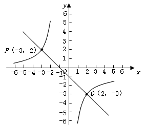解:(1)设一次函数的关系式为y=kx+b,反比例函数的关系式为,∵反比例函数的图象经过点Q(2,-3),∴,n=-6,∴所求反比例函数的关系式为;将点P(-3,m)的坐标代入上式得m=2,∴点P的坐标为(-3,2),由于一次函数y=kx+b的图象过P(-3,2)和Q(2,-3),∴ 解得,∴所求一次函数的关系式为y=-x-1;(2)两个函数的大致图象如图;(3)由两个函数的图象可以看出,当x<-3或0<x<2时,一次函数的值大于反比例函数的值,当-3<x<0或x>2时,一次函数的值小于反比例函数的值。