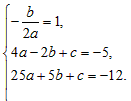 在平面直角坐标系xOy中,已知抛物线y=ax2+bx+c的对称轴是x=1,并且经过(-2,-5)和(5,-12)两点。