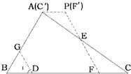 设∠B>∠C,在BC上取点D,作∠1=∠B,取AC中点E,过E作EF∥DG交BC于F,则EF为剪切线