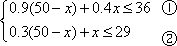七(2)班共有50名学生,老师安排每人制作一件A型或B型的陶艺品,学校现有甲种制作材料36 kg,乙种制作材料29 kg,制作A、B两种型号的陶艺品用料情况如下表: