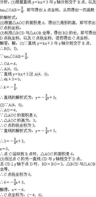 如图:直线y=kx+3与x轴、y轴分别交于A、B两点,tan∠OAB=