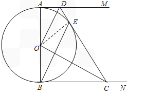 ∵AM、DE是⊙O的切线,OA、OE是⊙O的半径,