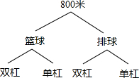 (2)今年重庆5月开展中学生“阳光体育”技能大赛. 学校打算从八年级(1)、(2)选派两个优秀体育运动项目去参赛.产生的办法是这样的:先组织八年级(1)班和(2)班的相同项目的兴趣小组对决产生一个优胜队,然后学校从产生出的四个优胜队中随机抽取两个队代表学校参赛。请你用列表法或画树形图求选派两队恰好是乒乓球队和篮球队的概率.