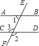 如图所示,直线AB、CD被直线EF所截,如果AB∥CD,∠1=65°,求∠2的度数.