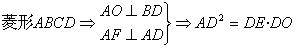 已知,如图,四边形ABCD为菱形,AF⊥AD交BD于E,交BC于F。
