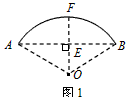 图1是某学校存放学生自行车的车棚的示意图(尺寸如图所示),车棚顶部是圆柱侧面的—部分,其展开图是矩形.图2是车棚顶部截面的示意图,AB所在圆的圆心为点O.![]()