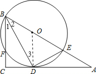分析:(1)连接OD,由OB=OD和角平分线性质得出∠ODB=∠DBC.推出OD∥BC,得出∠ODC=90°,根据切线的判定推出即可;