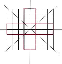 请你在右图的方格内,设计一个轴对称图形,并画出它的对称轴。