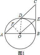 分析 (1)连接OD,证明Rt△ODE≌Rt△OBE得到∠BOE=$\frac{1}{2}$∠DOB,根据半径相等得到∠A=$\frac{1}{2}$∠DOB,根据平行线的判定证明OE∥AD;