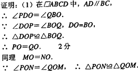 (2)ÈôµãOΪֱÏßBDÉÏÈÎÒâÒ»µã£¬ÆäËûÌõ¼þ²»±ä£¬Ôò¡÷PONÓë¡÷QOMÓÖÓÐÔõÑùµÄ¹ØÏµ£¿ÊԾ͵ãOÔÚÈçͼËùʾµÄλÖ㬻³öͼÐΣ¬Ö¤Ã÷ÄãµÄ²ÂÏ룻